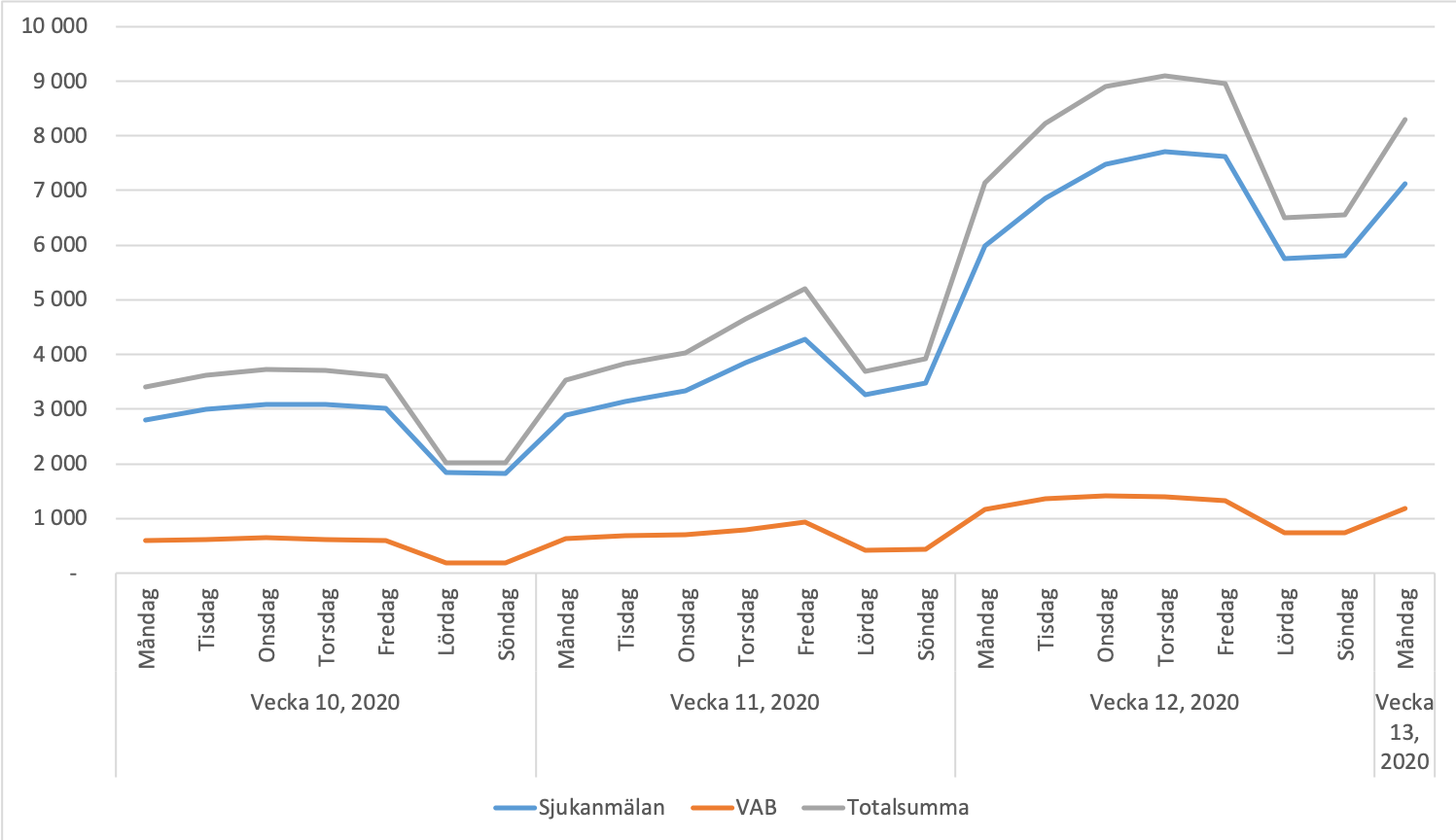 Diagram visar något lägre korttidsfrånvaro än förgående vecka